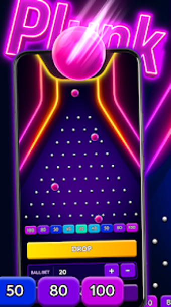 Plynklicker är ett gratis arkadspel för Android som erbjuder en enkel men beroendeframkallande spelmekanik. Spelaren interagerar med en neonfärgad plinko-arena där varje tappning av en knapp kan påverka resultatet. Med en tydlig poängräkning högst upp på skärmen och en enda boll som faller genom en triangel av spikar, skapar spelet en dynamisk och engagerande atmosfär. Spelaren kan justera insatsen med hjälp av +/– kontroller och avsluta när som helst med en ‘FINISH’-knapp, vilket ger flexibilitet i spelandet.